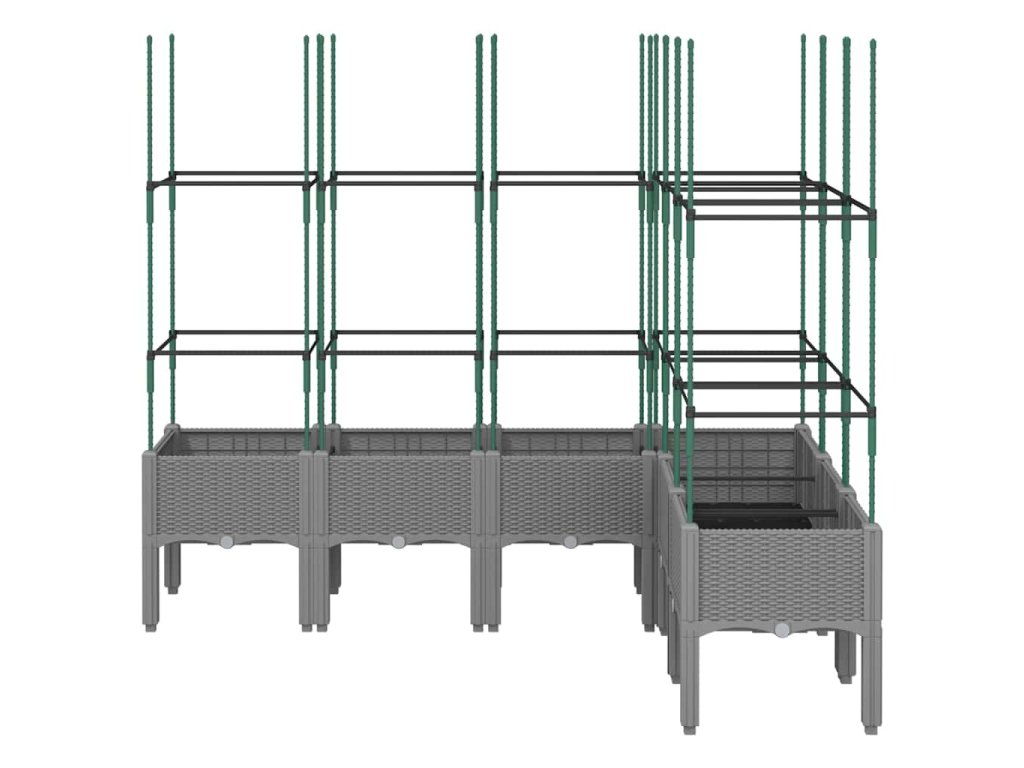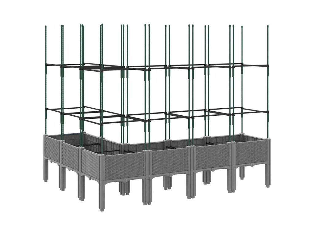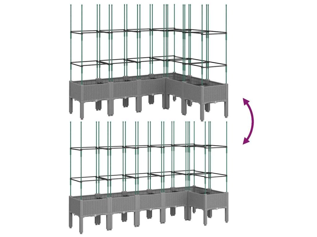 - Praktický dizajn: Ideálna spodná vrstva pomáha zadržiavať vlhkosť a umožňuje odtok vody. Integrovaná mriežka tiež ponúka skvelú podporu pre pestovanie popínavých rastlín, ako sú paradajky, hrach a ruže.