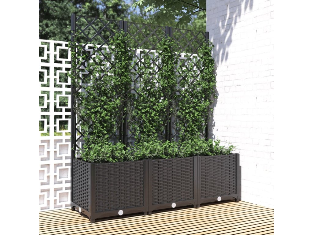 Multidom Záhradný kvetináč s mriežkou čierny 120x40x136 cm PP