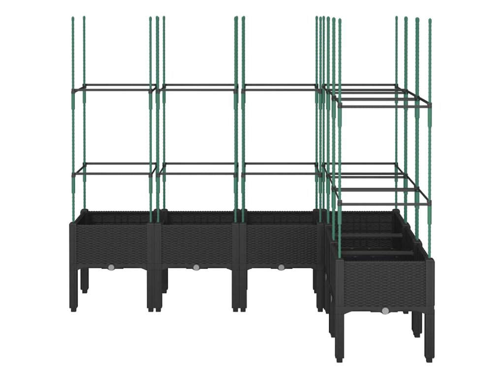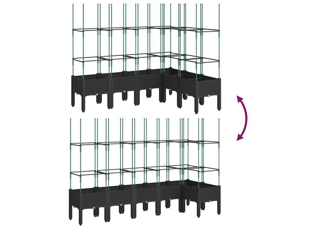 - Praktický dizajn: Ideálna spodná vrstva pomáha zadržiavať vlhkosť a umožňuje odtok vody. Integrovaná mriežka tiež ponúka skvelú podporu pre pestovanie popínavých rastlín, ako sú paradajky, hrach a ruže.