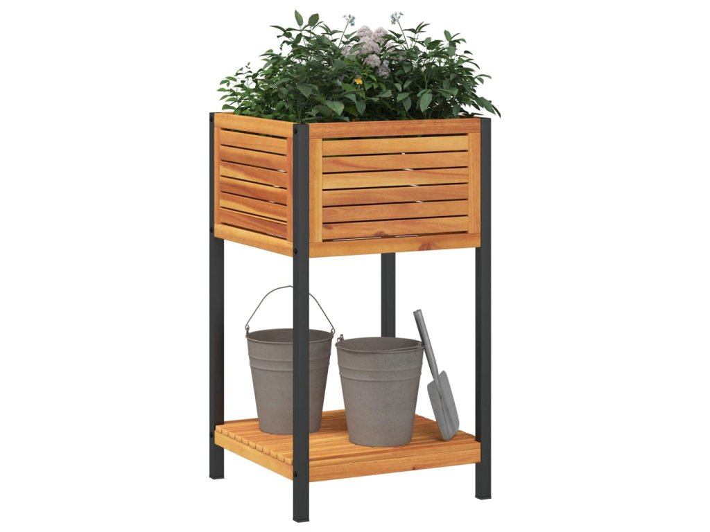 Multidom Záhradný kvetináč s policou 45x45x80 cm masívna akácia a oceľ