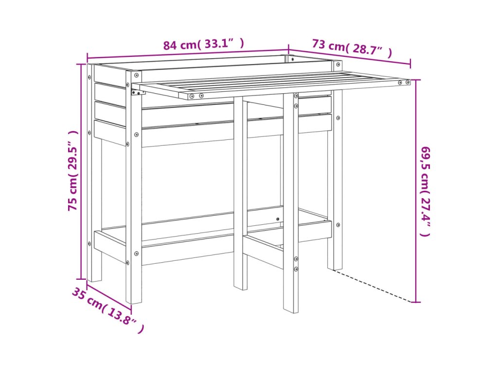 - Skladacia stolová doska: Tento balkónový kvetináč má skladaciu dosku, ktorá ponúka dostatok pracovného priestoru pre všetky vaše záhradnícke potreby. Keď sa nepoužíva, dá sa pohodlne zložiť.