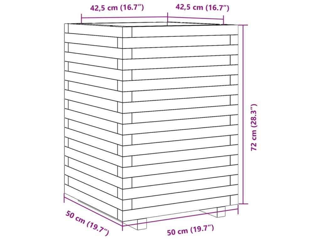 Multidom Záhradný kvetináč voskovohnedý 50x50x72 cm masívna borovica