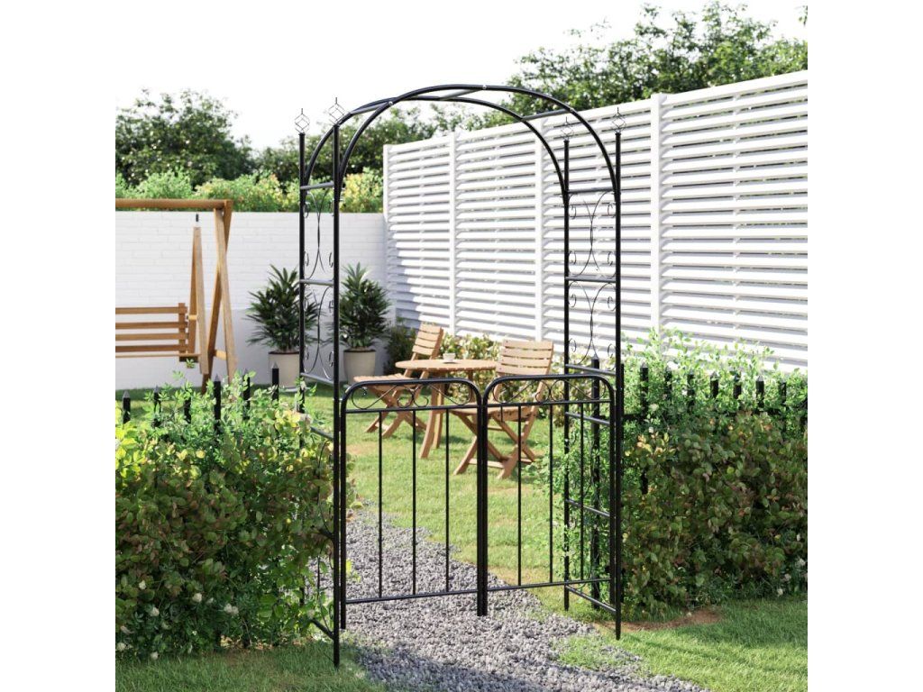 Multidom Záhradný oblúk s bránou čierny 108x45x235 cm oceľ