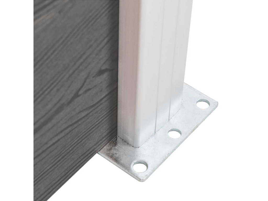 V balení sa nachádza 9 dosiek z WPC, 1 stĺpik, 1 oceľový podstavec a 1 hliníková tyč.