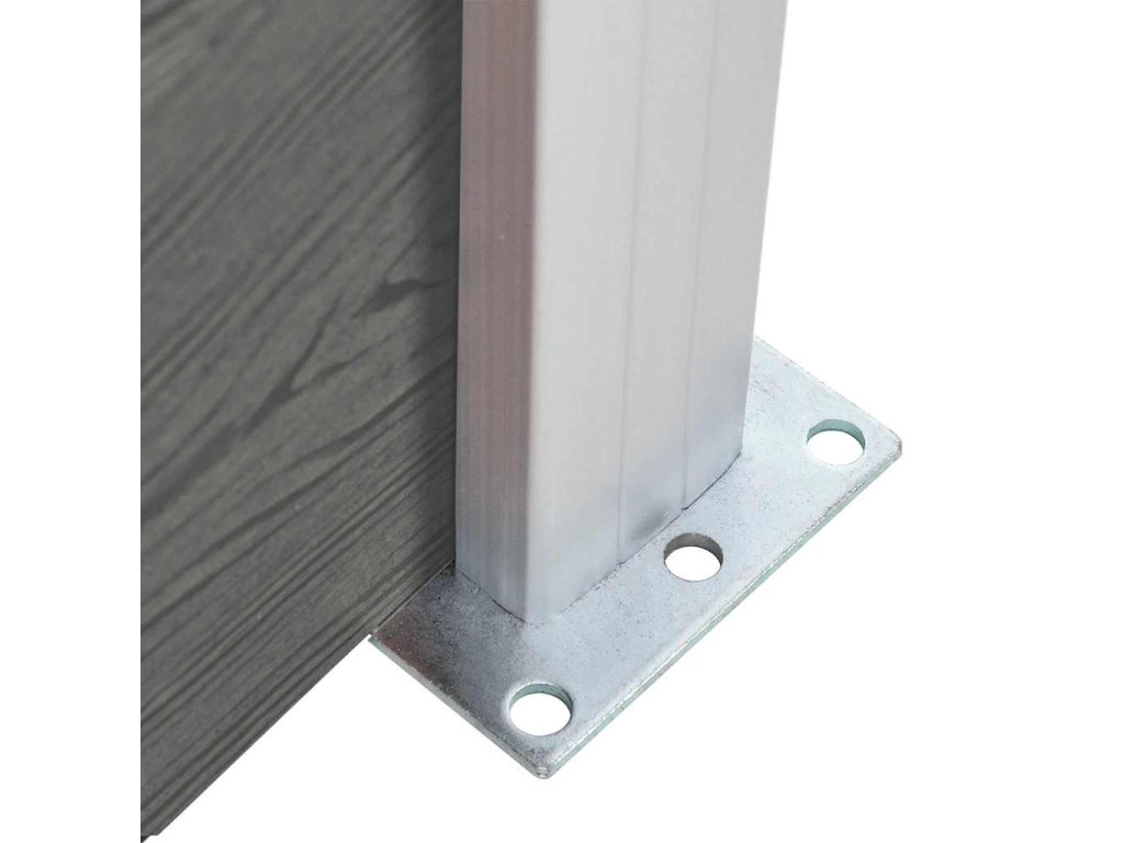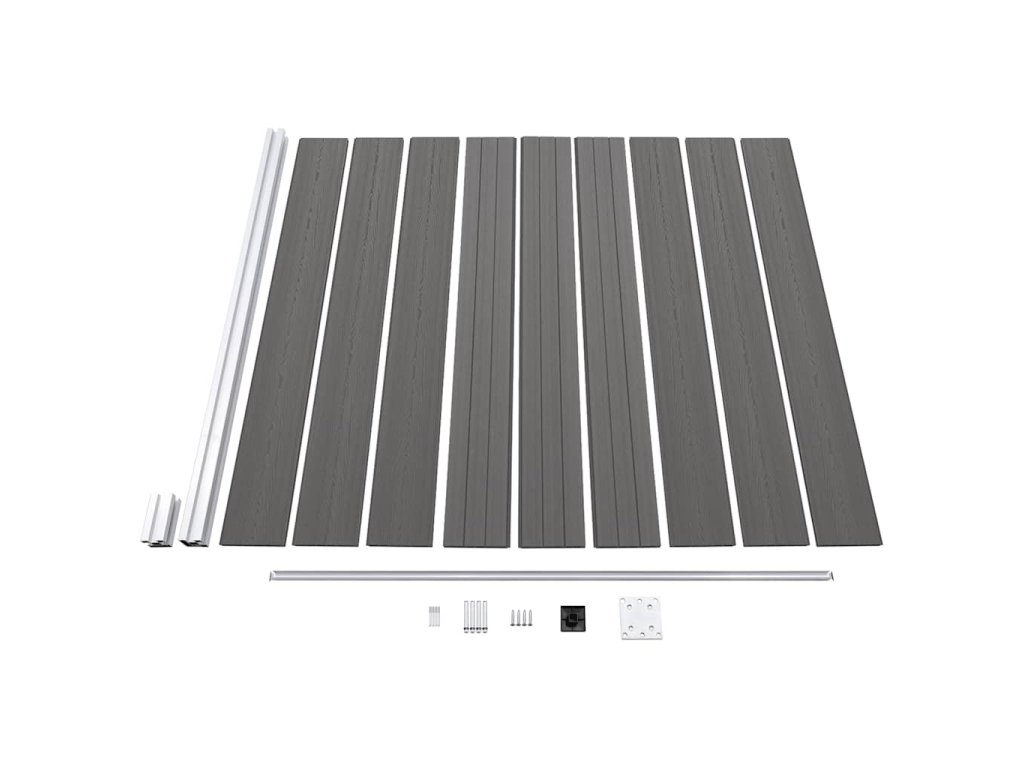 V balení sa nachádza 9 dosiek z WPC, 1 stĺpik, 1 oceľový podstavec a 1 hliníková tyč.