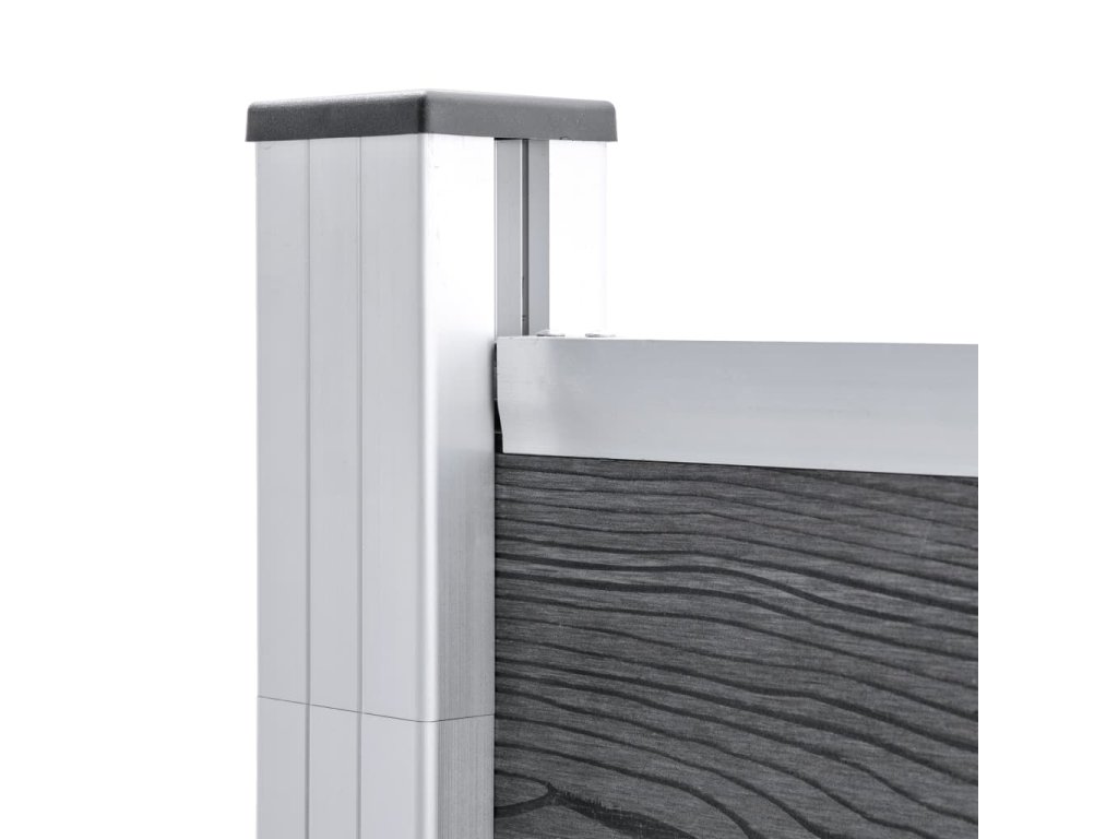 Plot z WPC má na jednej strane potlač dreva a na druhej strane potlač s pravidelným vzorom, takže si môžete vybrať ten dizajn, ktorý sa vám viac páči. Náš drevoplastový panel si nevyžaduje žiadnu ďalšiu úpravu, ako napríklad olejovanie alebo natieranie. Je veľmi trvácny a odolný voči hnilobe alebo hrdzi. Vďaka hliníkovému hornému profilu sa môžu plotové dosky k sebe tesne pripojiť, čo zvyšuje ich pevnosť a odolnosť voči nárazu. Plotové dosky s modulárnym dizajnom sa jednoducho montujú a umožnia vám plot v prípade potreby rozšíriť. Stĺpiky majú tri otvory, aby ste plot mohli zostaviť rôznymi spôsobmi, napríklad v priamej línii (180°), do pravého uhla (90°) alebo do tvaru písmena T. V balení sa nachádza 24 dosiek z WPC, 5 stĺpikov a 4 hliníkové tyče.