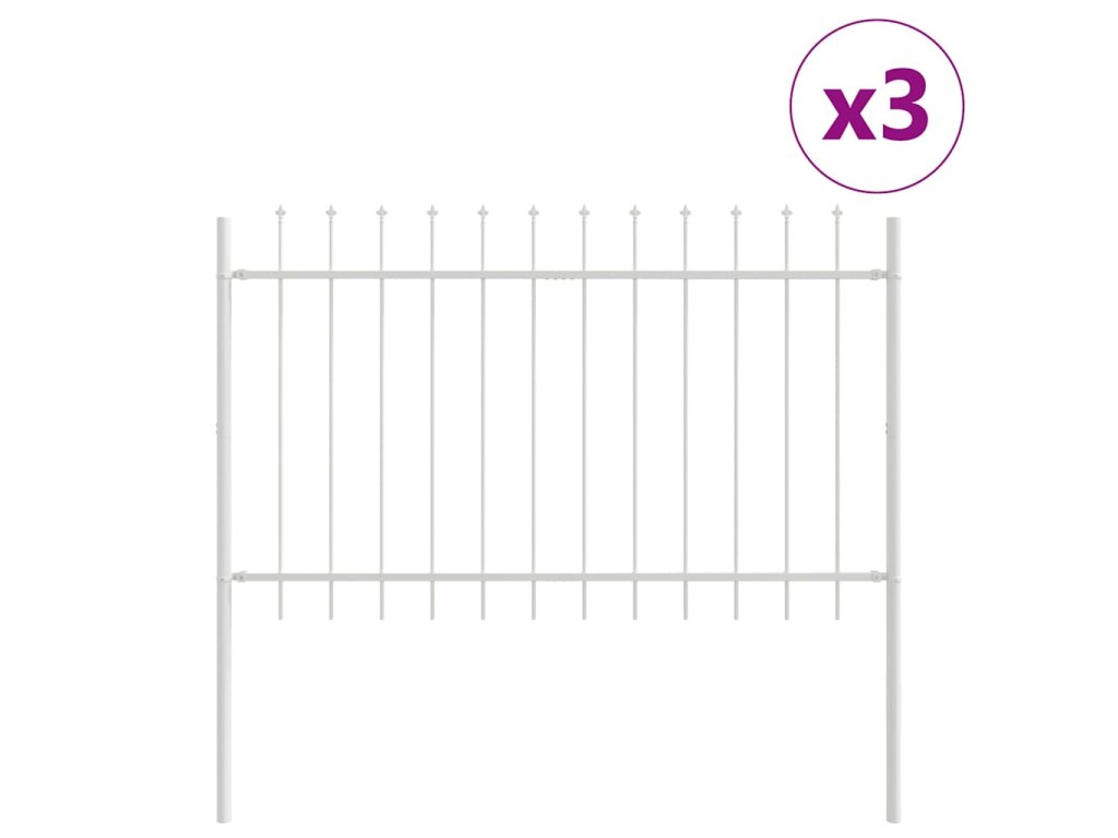 Multidom Záhradný plot 3 pcs Biela 5,1 x 0,8 m Práškovaná oceľ