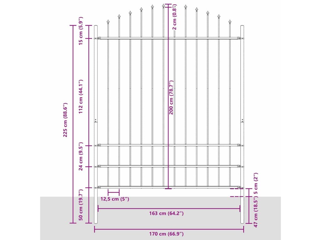 - Odolné materiály: Tento záhradný plot vyrobený z ocele s práškovou úpravou poskytuje pevný a vodoodolný ochranný prvok pre vonkajšie prostredie. Materiál plotu je nielen pekný, ale aj odolný voči všetkým vonkajším vplyvom. Povrchová úprava zabezpečuje, že plot vydrží dlhé roky, takže si môžete na záhrade užívať pohľad bez obáv.
