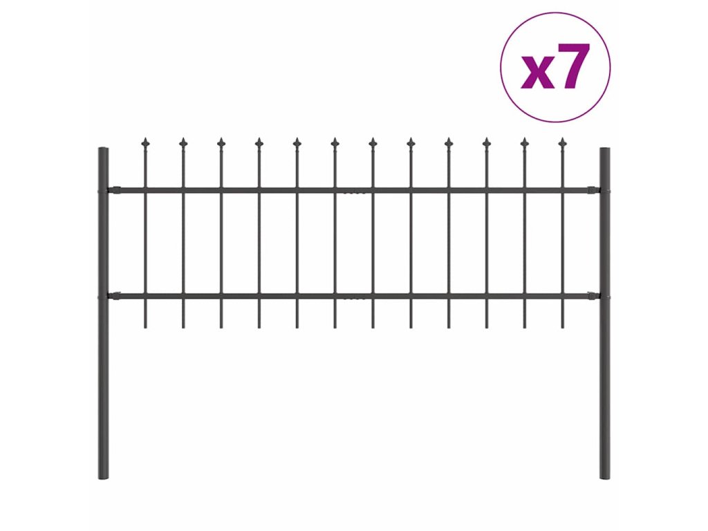 Multidom Záhradný plot 7 pcs Sivá 11,9 x 0,8 m Práškovaná oceľ