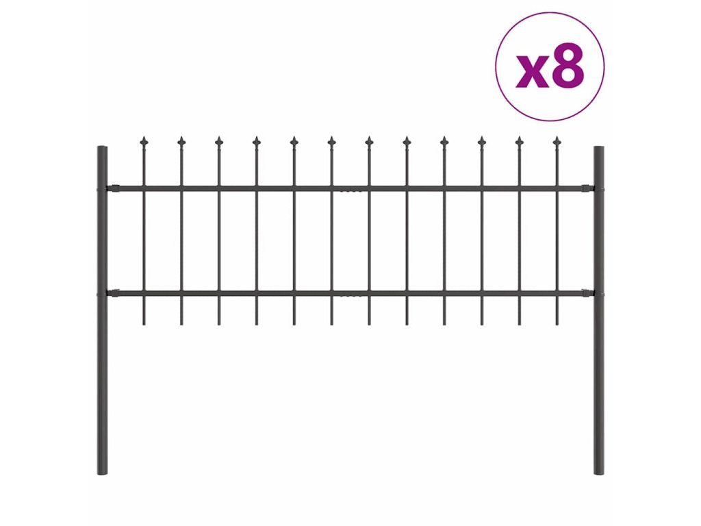 Multidom Záhradný plot 8 pcs Sivá 13,6 x 0,6 m Práškovaná oceľ