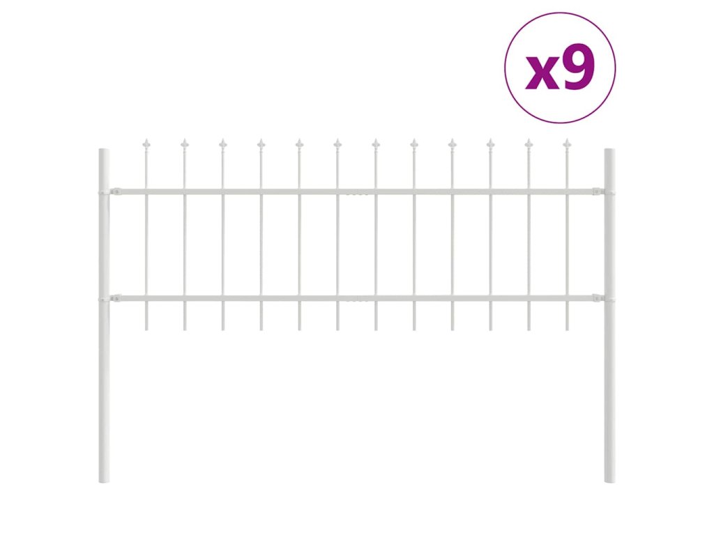 Multidom Záhradný plot 9 pcs Biela 15,3 x 0,6 m Práškovaná oceľ