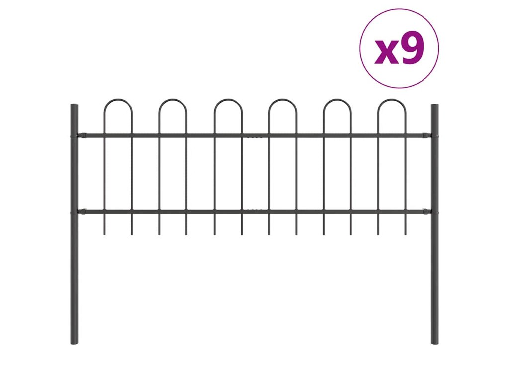 Multidom Záhradný plot 9 pcs Sivá 15,3 x 0,6 m Práškovaná oceľ
