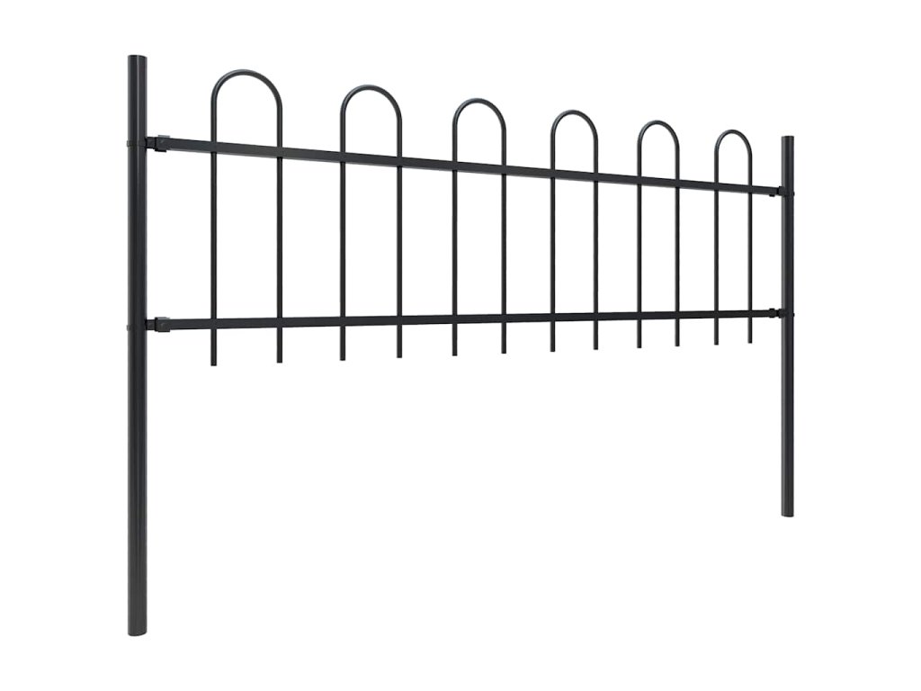 Multidom Záhradný plot s oblúkom navrchu, oceľový 1070x60 cm, čierny