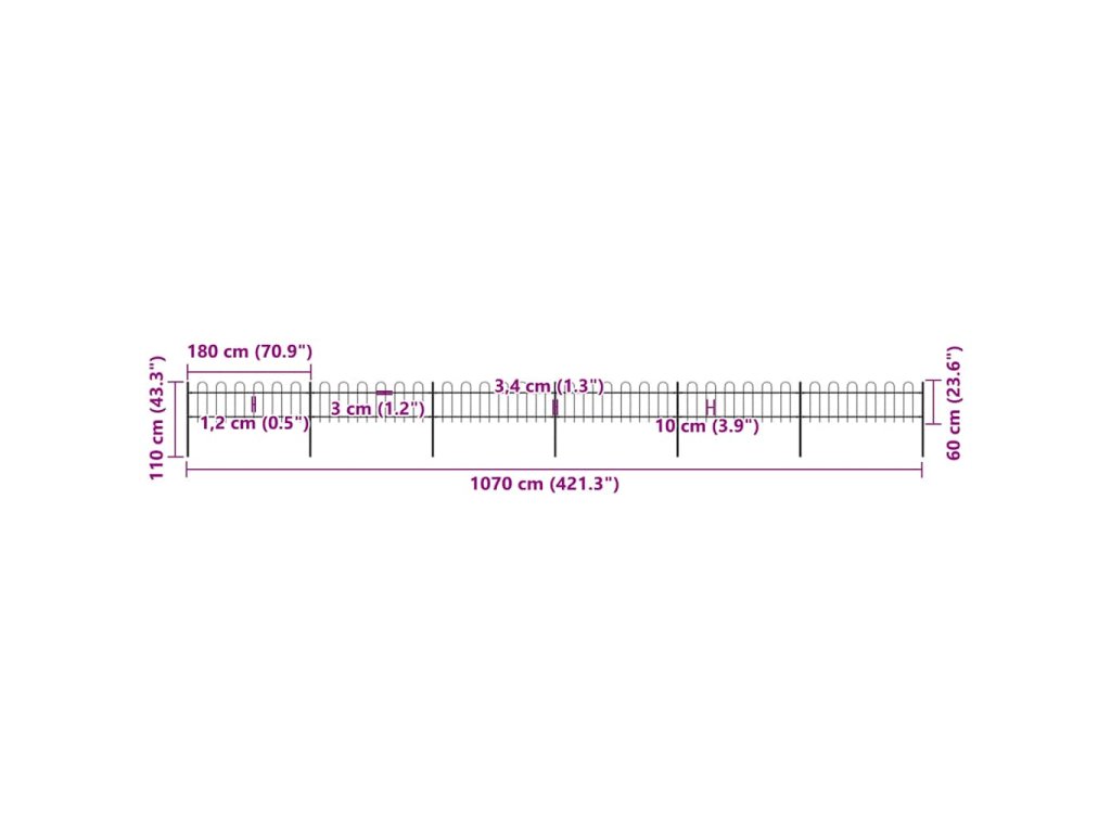 Vytvorte si okolo svojej záhrady, domu či chodníka elegantné oplotenie s našim záhradným plotom! Ozdobný oceľový záhradný plot pozostáva zo 6 plotových panelov a 7 stĺpikov a má celkovú dĺžku 10,2 metra. Umožní vám postaviť si robustnú a bezpečnú bariéru, ktorá si nevyžaduje žiadnu údržbu a ktorá ohraničí vašu záhradu, dom či komerčné priestory.