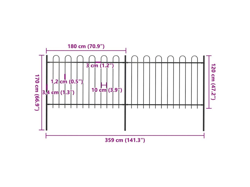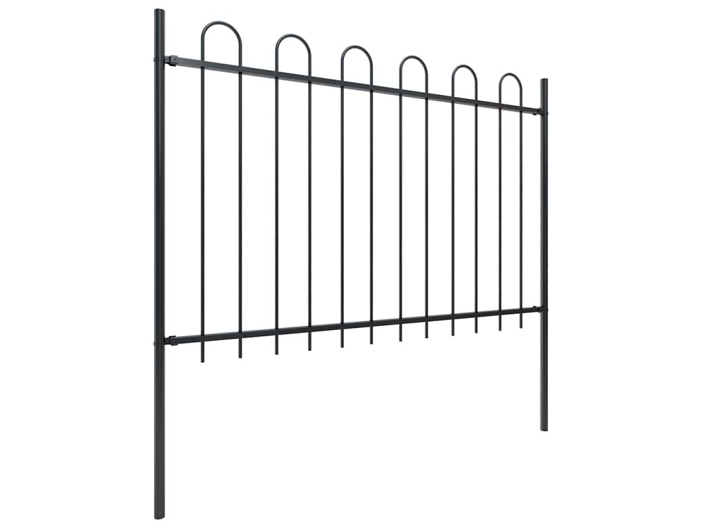 Multidom Záhradný plot s oblúkom navrchu, oceľový 359x120 cm, čierny