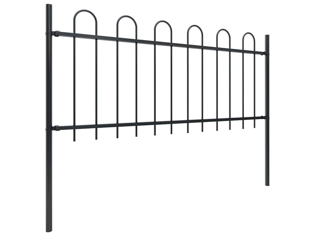 Multidom Záhradný plot s oblúkom navrchu, oceľový 714,5x80 cm, čierny