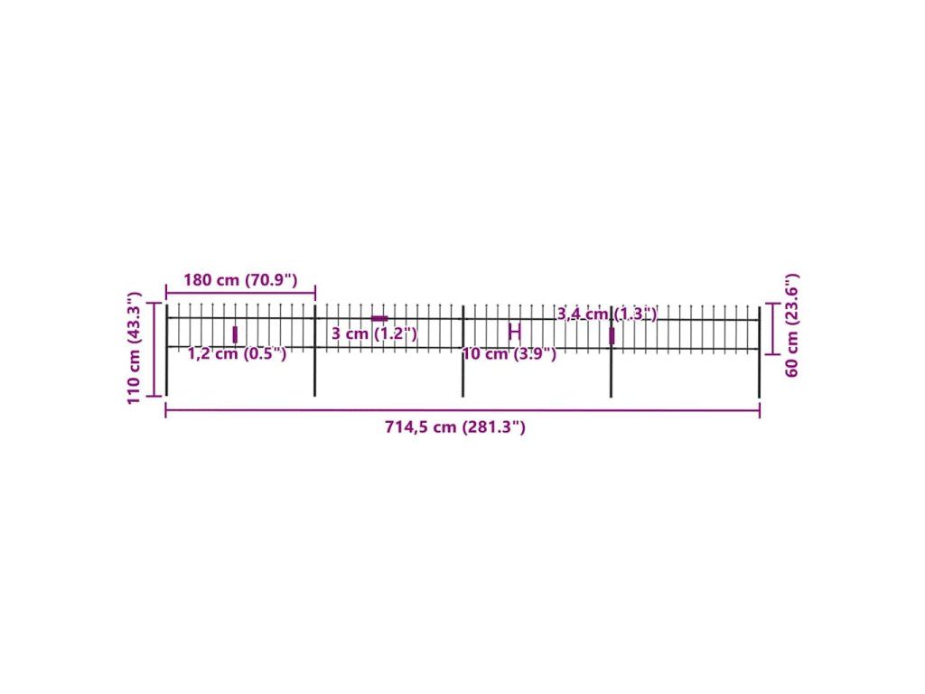 Multidom Záhradný plot s vrchnou časťou z ocele 714,5x60 cm čierny