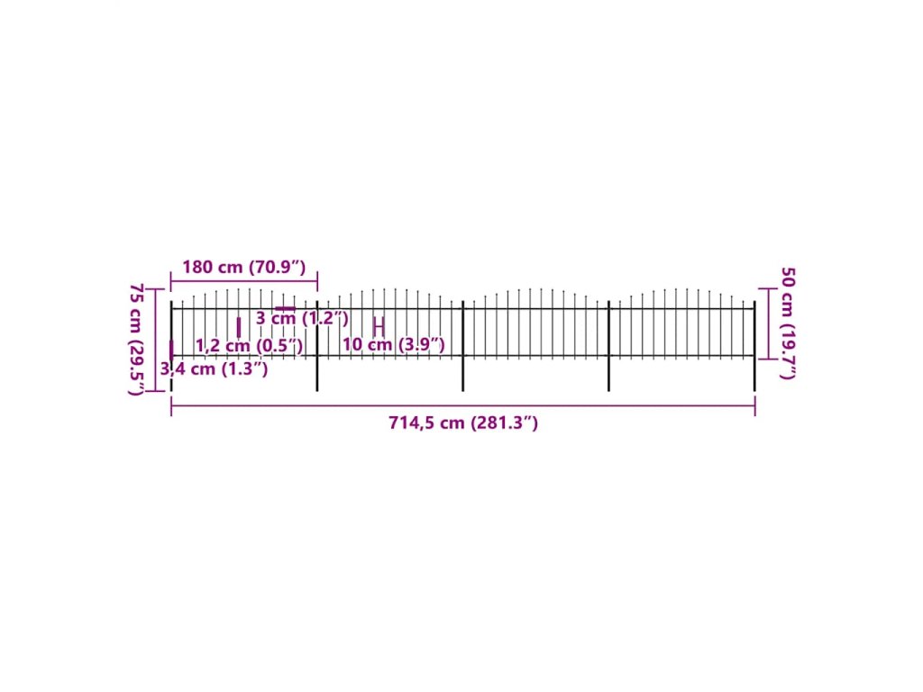 Multidom Záhradný plot s vrchnou časťou z ocele 714,5x75 cm čierny