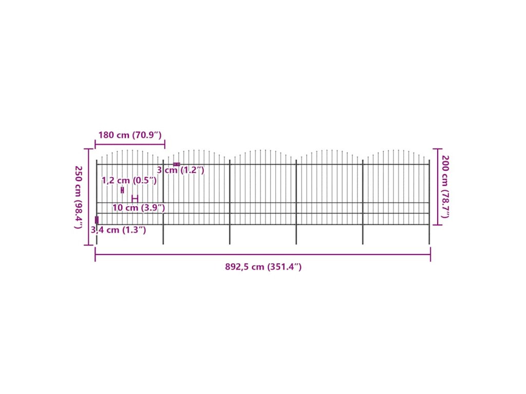 Multidom Záhradný plot s vrchnou časťou z ocele 892,5x200 cm čierny