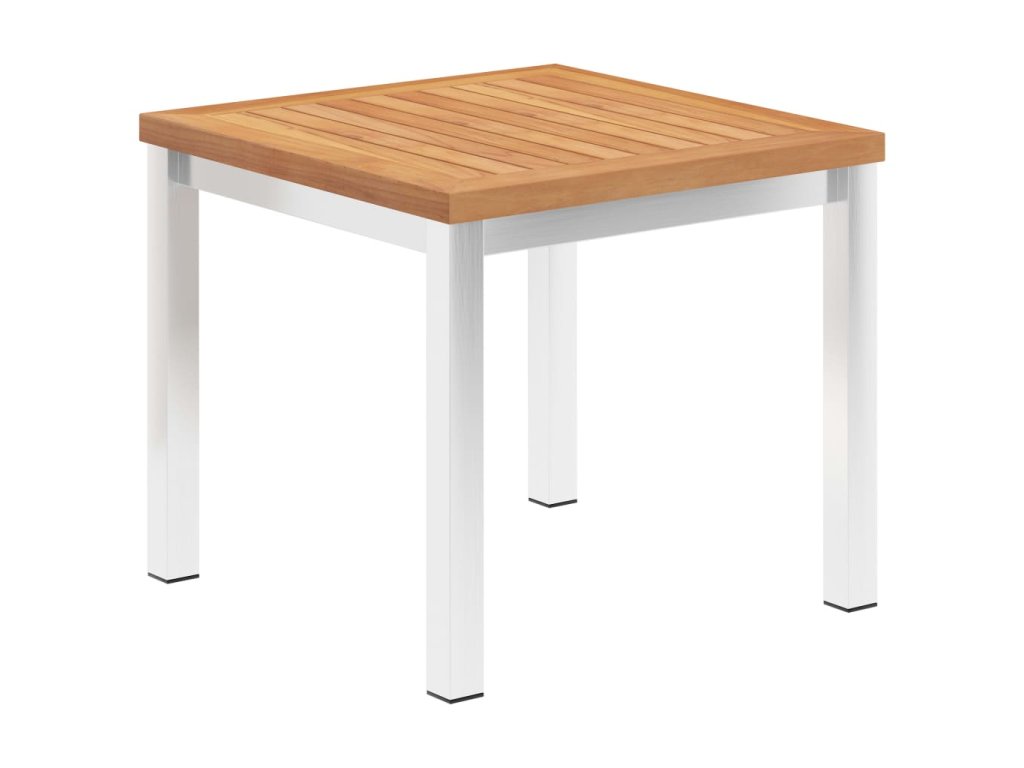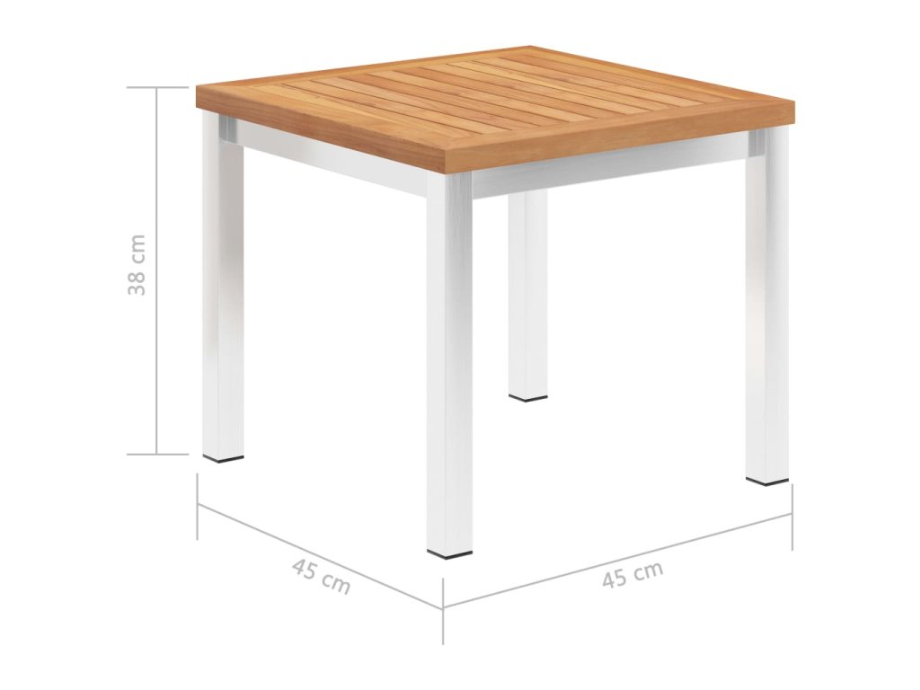 Multidom Záhradný príručný stôl 45x45x38 cm teakový masív a nehrdzavejúca oceľ