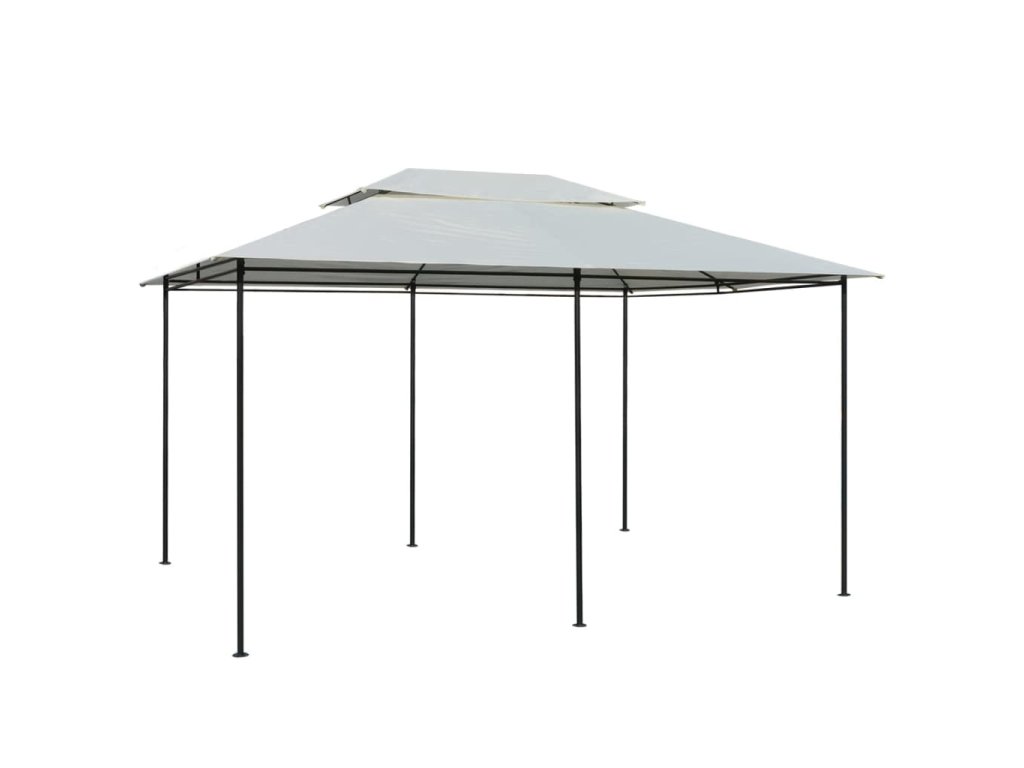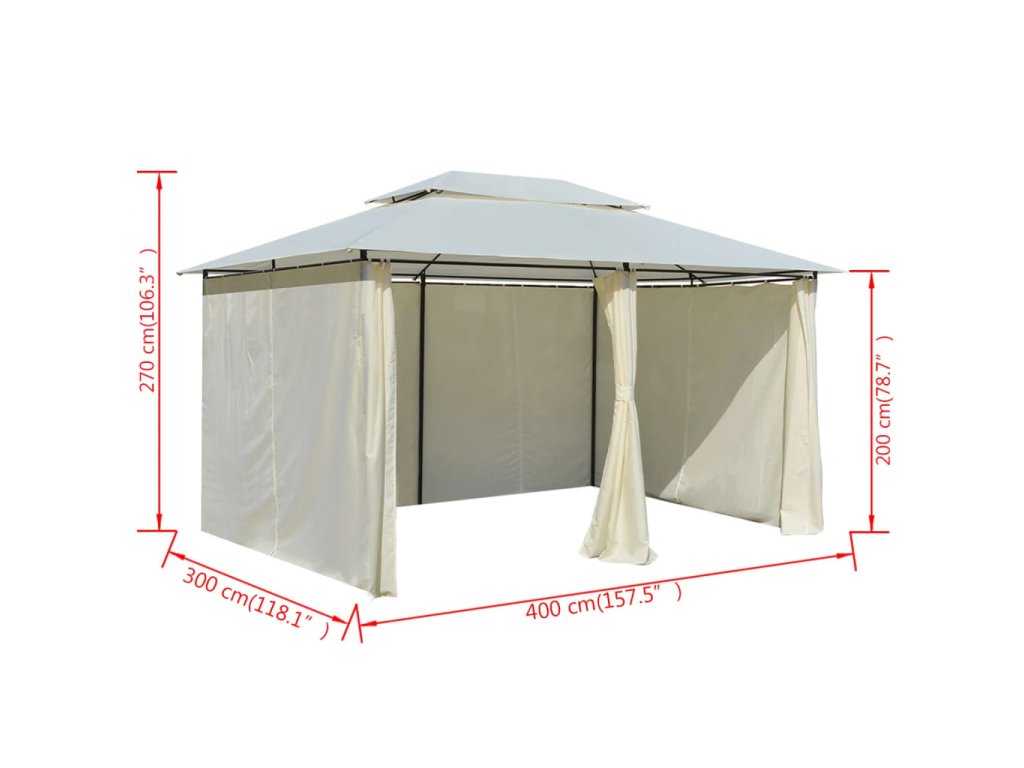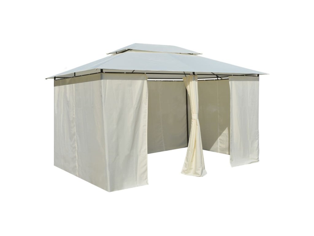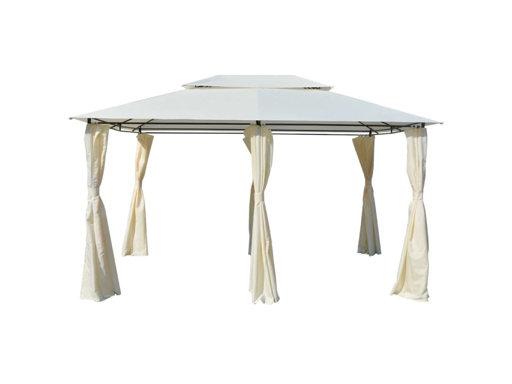 Štýlový dizajn s vetracím otvorom umožňuje lepšie prúdenie vzduchu a postará sa o optimálne pohodlie. Tento pevná a trvácny altánok má vysokokvalitný oceľový rám s práškovou povrchovou úpravou. Strieška a elegantné nastaviteľné závesy sú vyrobené z vysokokvalitnej polyesterovej látky s vrstvou poylamidu, ktorá je vodovzdorná a odolná voči UV žiareniu, a preto je naozaj vhodná do exteriéru. Závesy sa dajú úplne zatiahnuť, a tak si môžete vychutnať príjemné večery v súkromí bez otravného hmyzu.