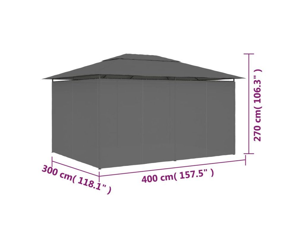 Multidom Záhradný prístrešok so závesmi 4x3 m, antracitový