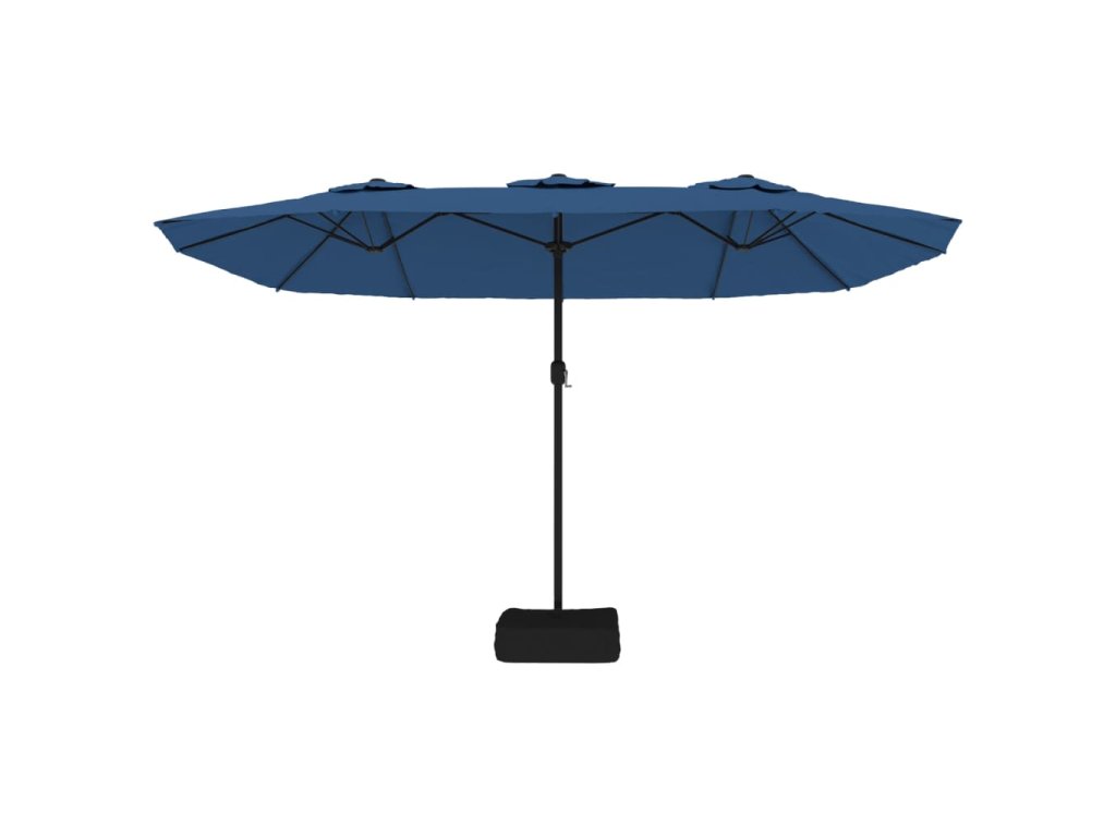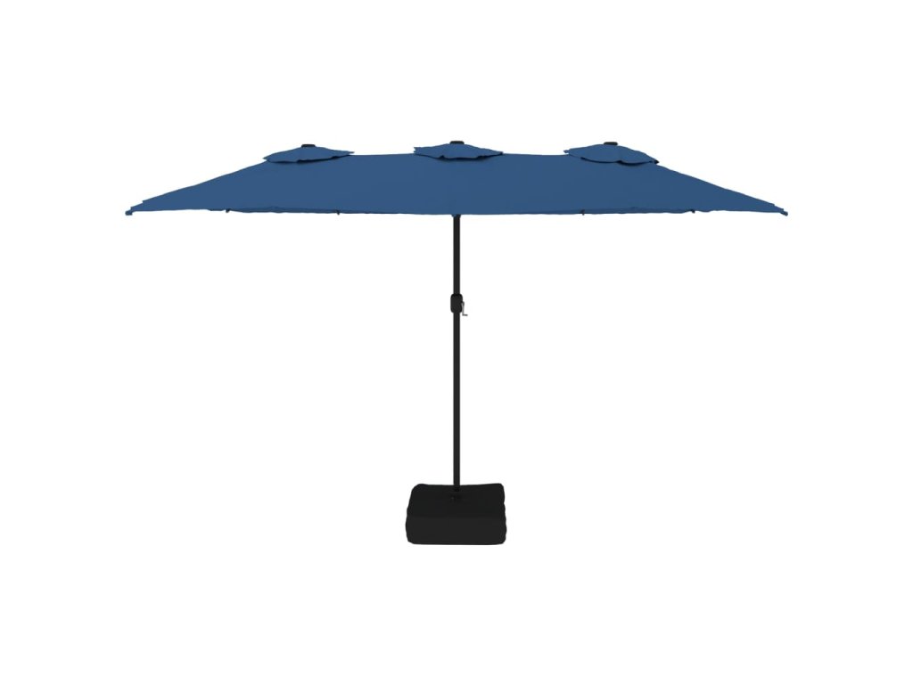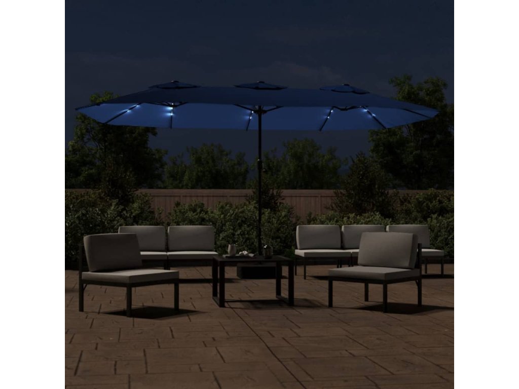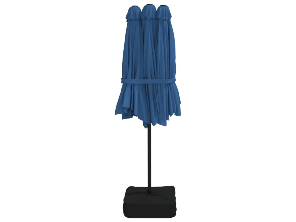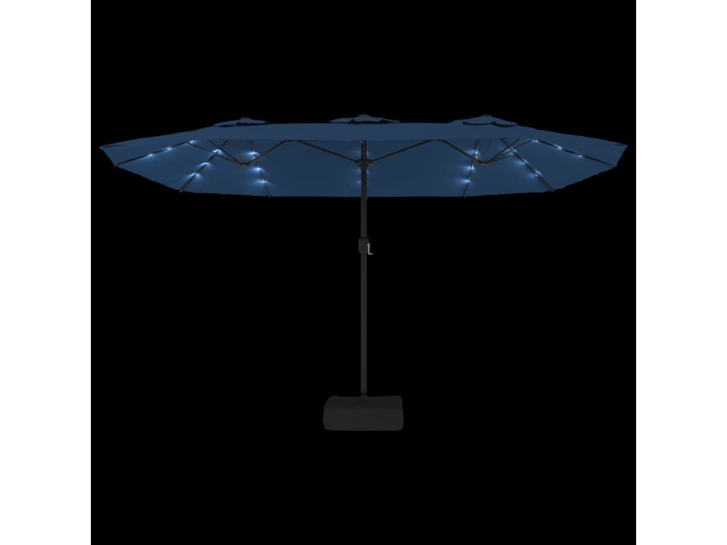 Multidom Záhradný slnečník, dvojitá strieška+LED, azúrový 449x265 cm