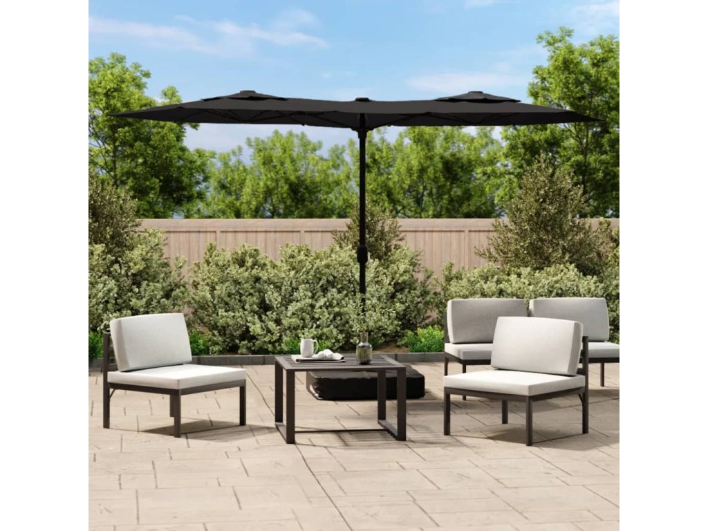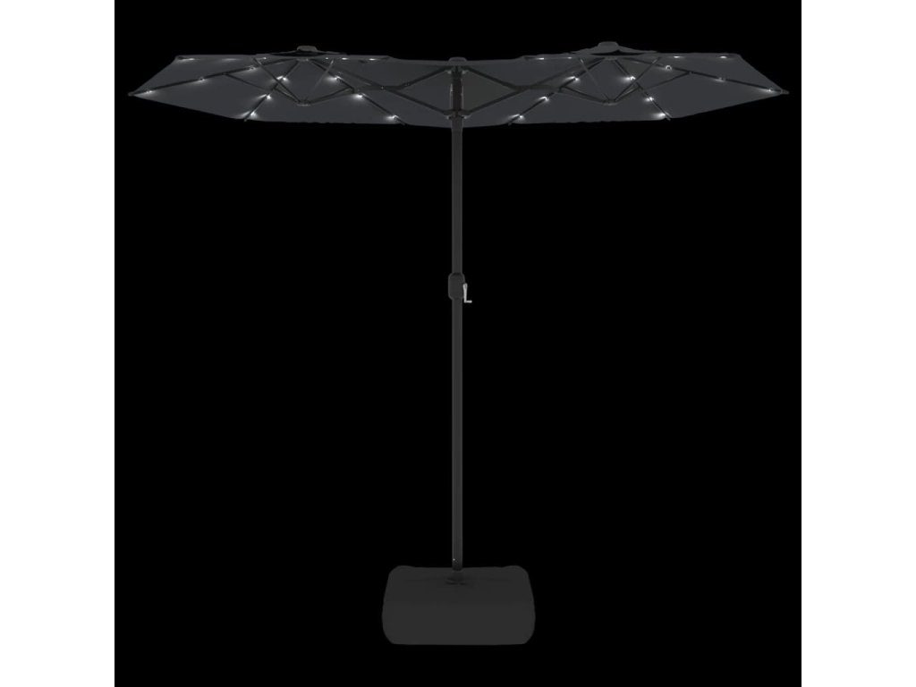 Multidom Záhradný slnečník, dvojitá strieška+LED, čierny 316x145 cm