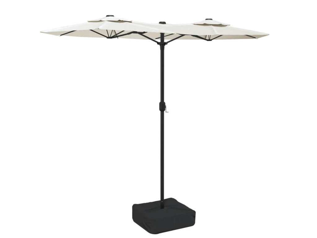 Multidom Záhradný slnečník, dvojitá strieška+LED, pieskový 316x145 cm