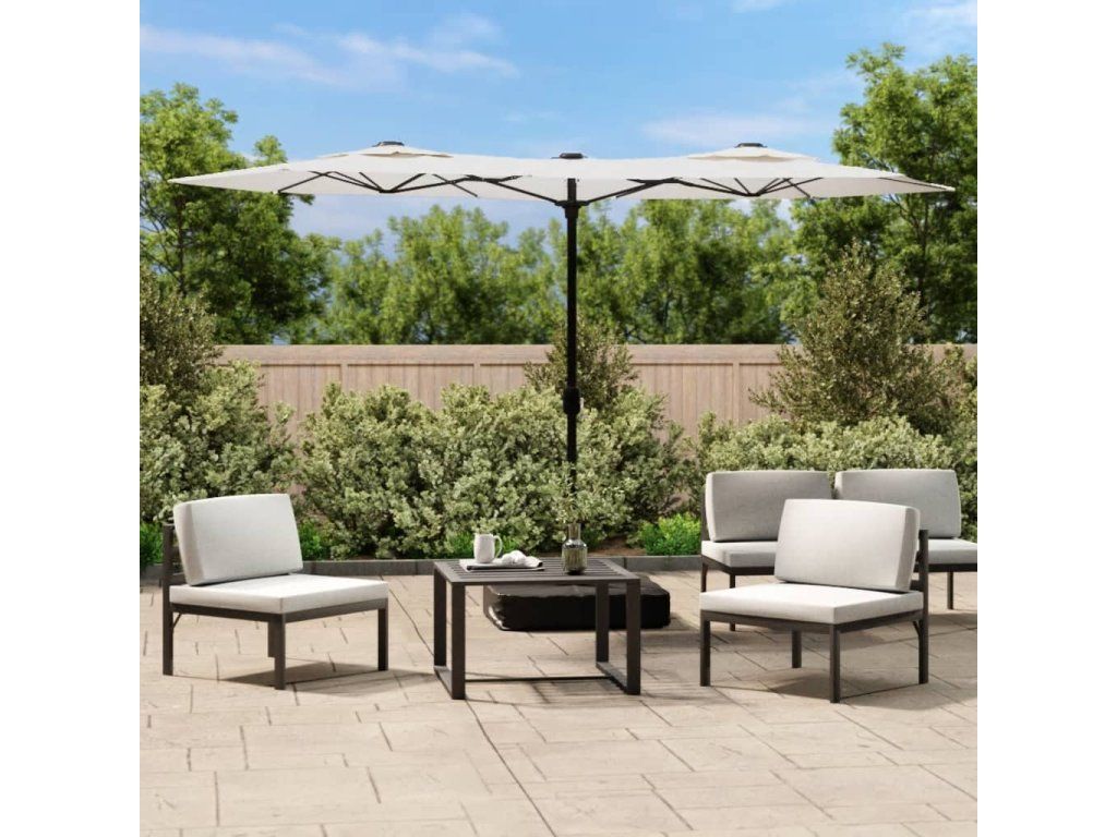 Tento elegantný záhradný slnečník s dvojitou strieškou a LED osvetlením predstavuje dokonalý spôsob, ako si vytvoriť príjemné miesto v tieni, a poskytne vám ochranu pred škodlivými slnečnými UV lúčmi.