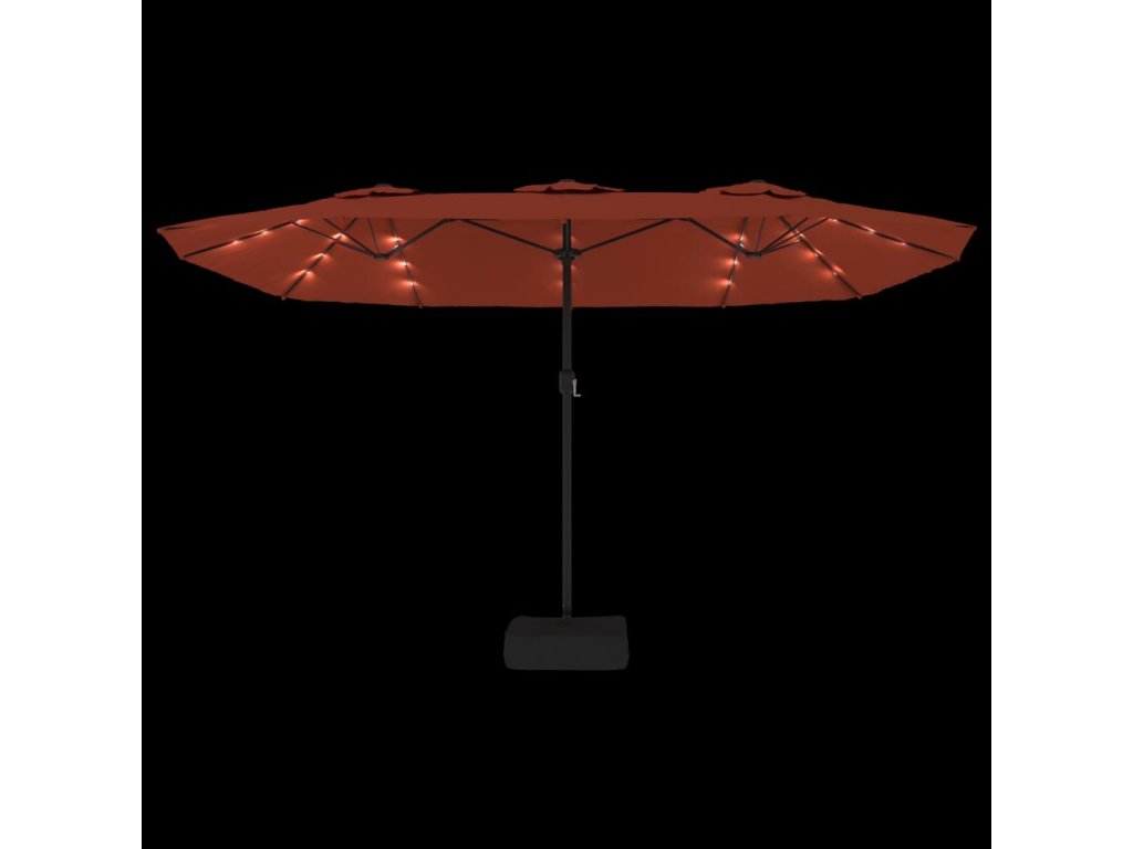 Multidom Záhradný slnečník, dvojitá strieška+LED, tehlový 449x265 cm