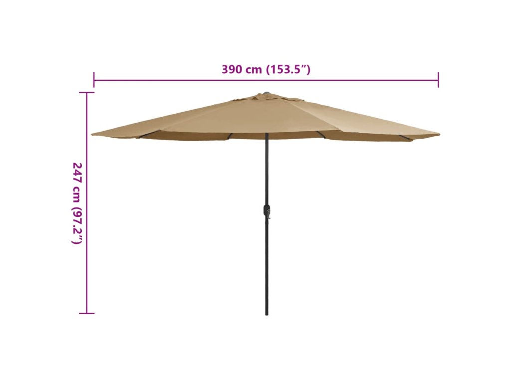 Multidom Záhradný slnečník, kovová tyč 390 cm, sivohnedý