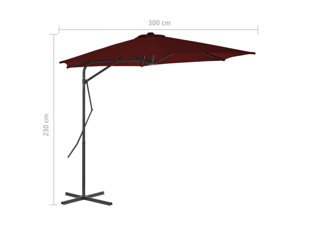 Multidom Záhradný slnečník, oceľová tyč, bordový 300x230 cm