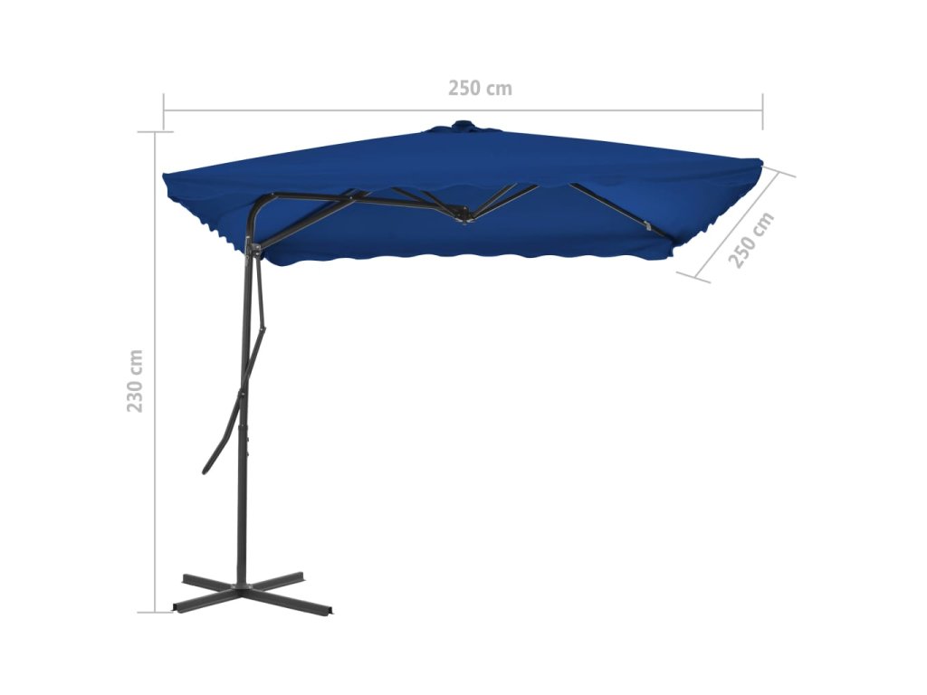 Multidom Záhradný slnečník, oceľová tyč, modrý 250x250x230 cm