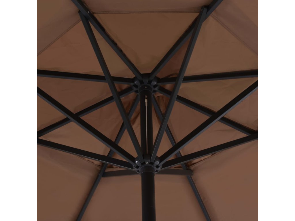 Tento záhradný slnečník sa dá ľahko otvárať a zatvárať jednoduchým potočením kľukou na tyči. Vďaka hliníkovej tyči a 8 robustným hliníkovým rebrám je slnečník veľmi odolný. Veľký odpojiteľný krížový podstavec mu navyše dodáva stabilitu bez toho, aby zaberal príliš veľa miesta.