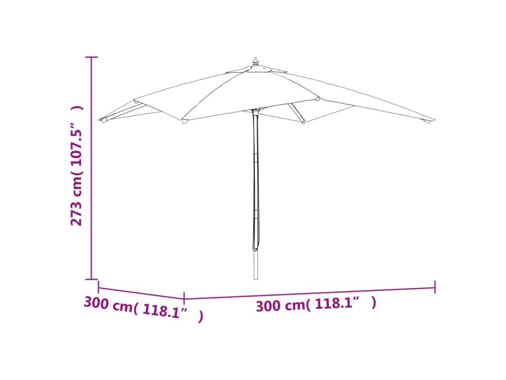 - Stabilný rám: Vďaka pevnej tyči z tvrdého dreva s odolnými rebrami je záhradný slnečník veľmi stabilný a odolný.