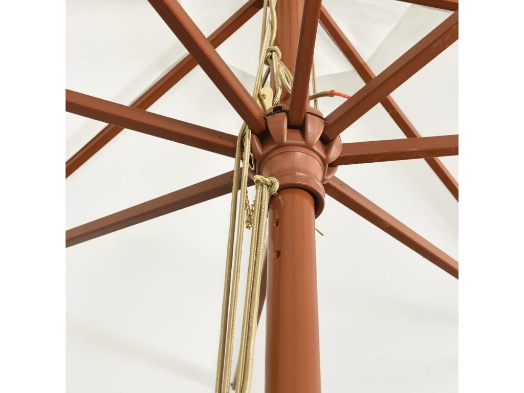 - Stabilný rám: Vďaka pevnej tyči z tvrdého dreva s odolnými rebrami je záhradný slnečník veľmi stabilný a odolný.