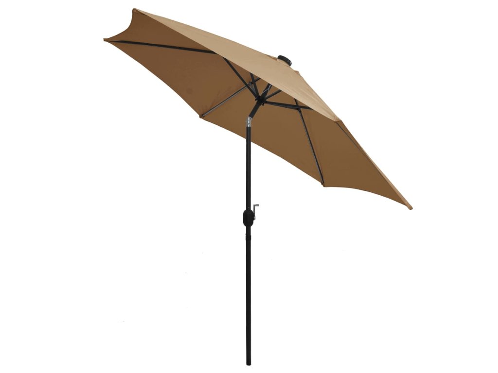 Multidom Záhradný slnečník s LED, hliníková tyč 300 cm, sivohnedý