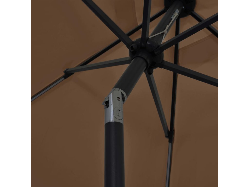 Slnečník je vyrobený z polyesteru, ktorý nevybledne a je odolný voči UV žiareniu, vďaka čomu vám poskytne optimálnu ochranu pred slnkom a ľahko sa čistí. Pevná hliníková tyč spolu so 6 robustnými rebrami zabezpečuje výbornú stabilitu a dlhú životnosť slnečníka. Záhradný slnečník sa dá jednoducho otvárať a zatvárať pomocou kľukového mechanizmu. Zabudované LED svetla v noci vytvoria príjemnú a romantickú atmosféru. Výrobok sa jednoducho montuje.