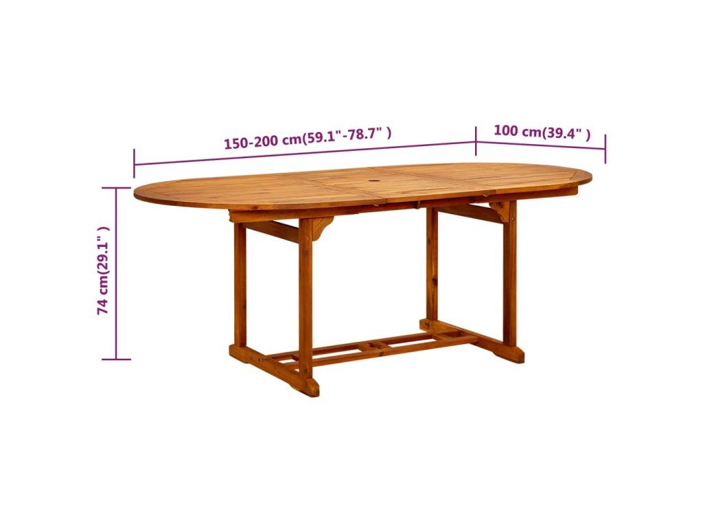 Multidom Záhradný stôl (150-200)x100x75 cm, akáciový masív