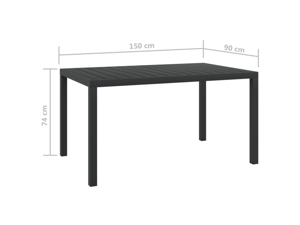Multidom Záhradný stôl, čierny 150x90x74 cm, hliník a WPC