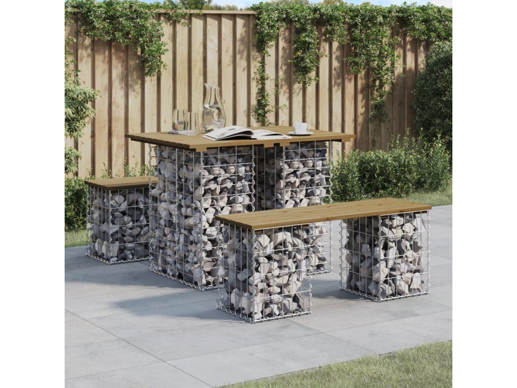 Multidom Záhradný stôl, gabiónový dizajn, 100x70x72 cm, impregnované drevo, borovica