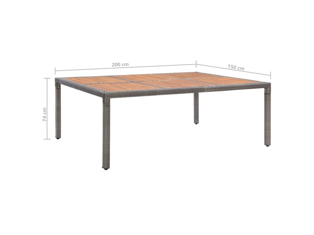Multidom Záhradný stôl, sivý 200x150x74 cm, polyratan a akáciové drevo