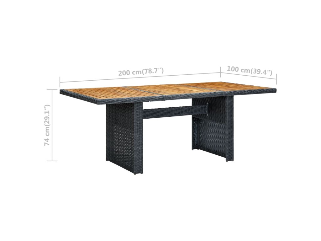 Multidom Záhradný stôl, tmavosivý, polyratan a akáciový masív