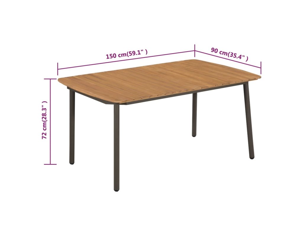 Multidom Záhradný stôl 150x90x72 cm, akáciový masív a oceľ