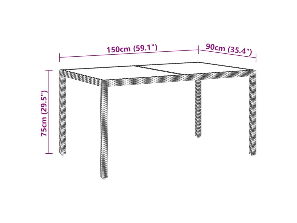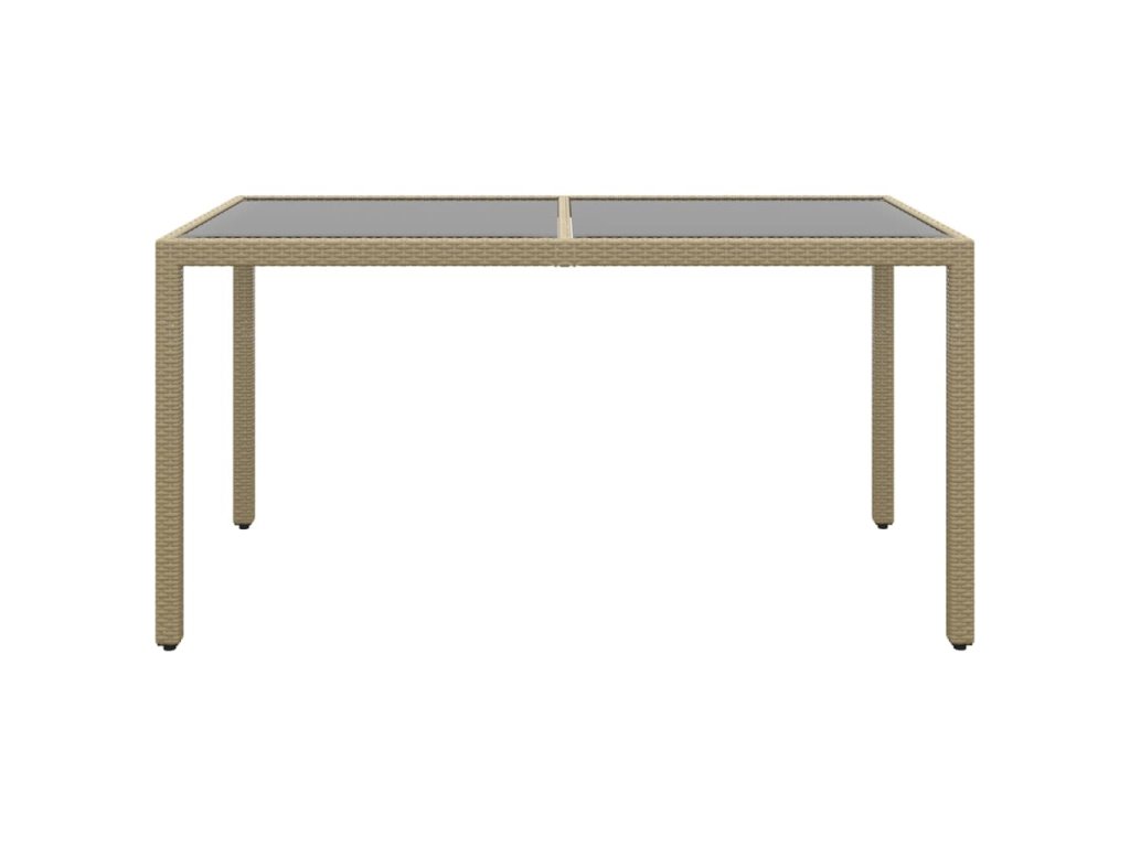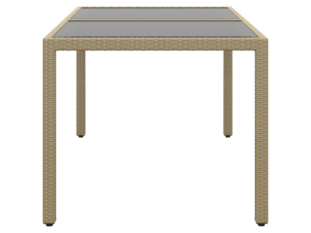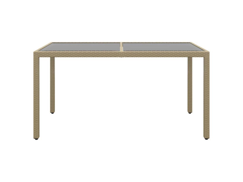 Multidom Záhradný stôl 150x90x75 cm tvrdené sklo a polyratan béžový