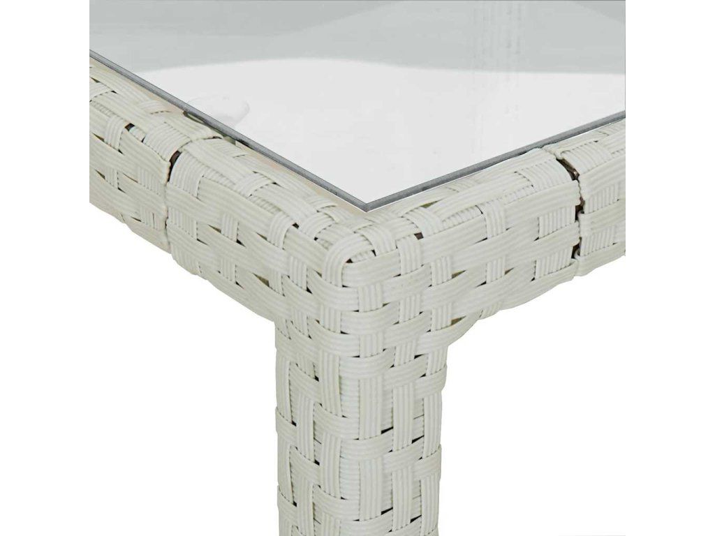 Multidom Záhradný stôl 150x90x75 cm tvrdené sklo a polyratan biely