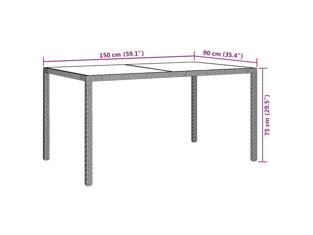 - Materiál: Polyratan, oceľ potiahnutá práškom, tvrdené sklo