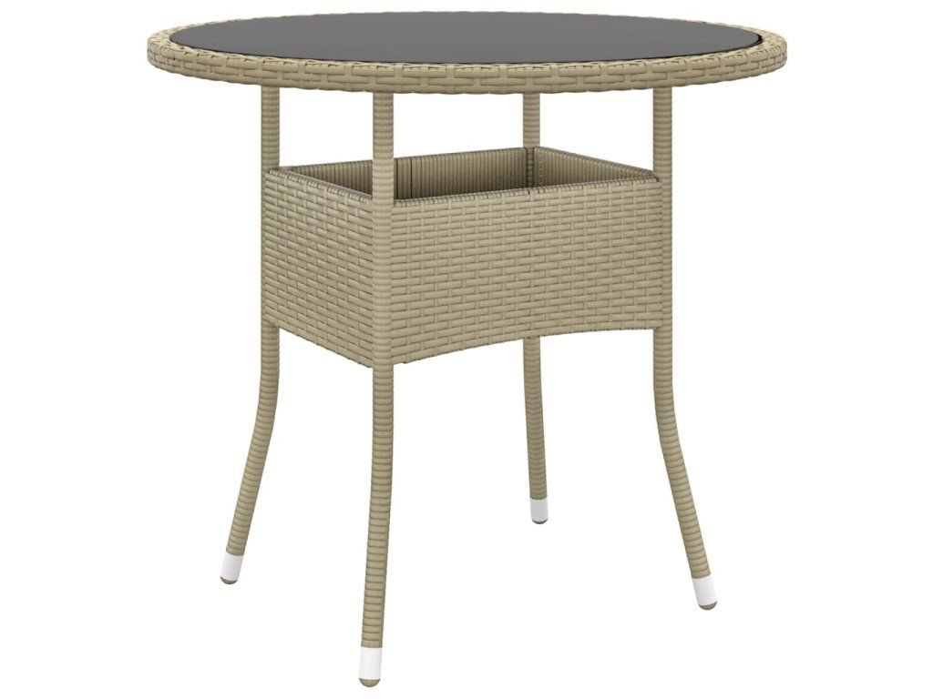 Multidom Záhradný stôl Ø80x75 cm tvrdené sklo a polyratan béžový
