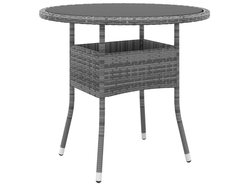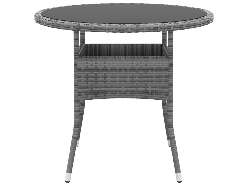 Multidom Záhradný stôl Ø80x75 cm tvrdené sklo a polyratan sivý